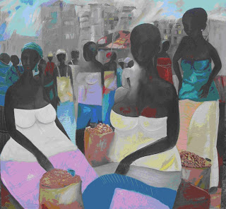 Chama-se Silva Dunduro. Pintor radicado na Beira. Leia o seu perfil artístico aqui. Tenho para mim que ele é uma espécie de Émile Zola da nossa pintura. Aqui começo uma série com quadros dele, quadros que nos falam da vida do dia a dia. As legendas dos quadros pertencem-lhe.Vendedeiras de feijões – óleo /tela ( 105X115 cm)- 2007