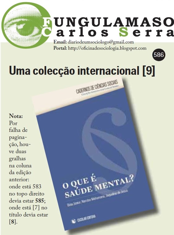 Sonhadores, os sociólogos sempre procuraram duas coisas: as leis do social e a reforma das sociedades. Cá por mim busco bem pouco: tirar a casca dos fenómenos e tentar perceber a alma dos gomos sociais sem esquecer que o mais difícil é compreender a casca. Aqui encontrareis um pouco de tudo: sociologia (em especial uma sociologia de intervenção rápida), filosofia, dia-a-dia, profundidade, superficialidade, ironia, poesia, fragilidade, força, mito, desnudamento de mitos, emoção e razão.